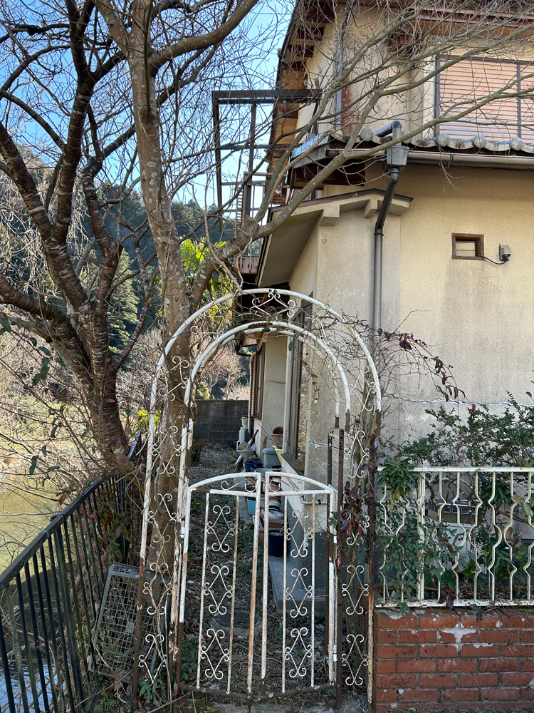 原因:川に面して建つため、造成時の施工が不適切で地盤沈下が原因。